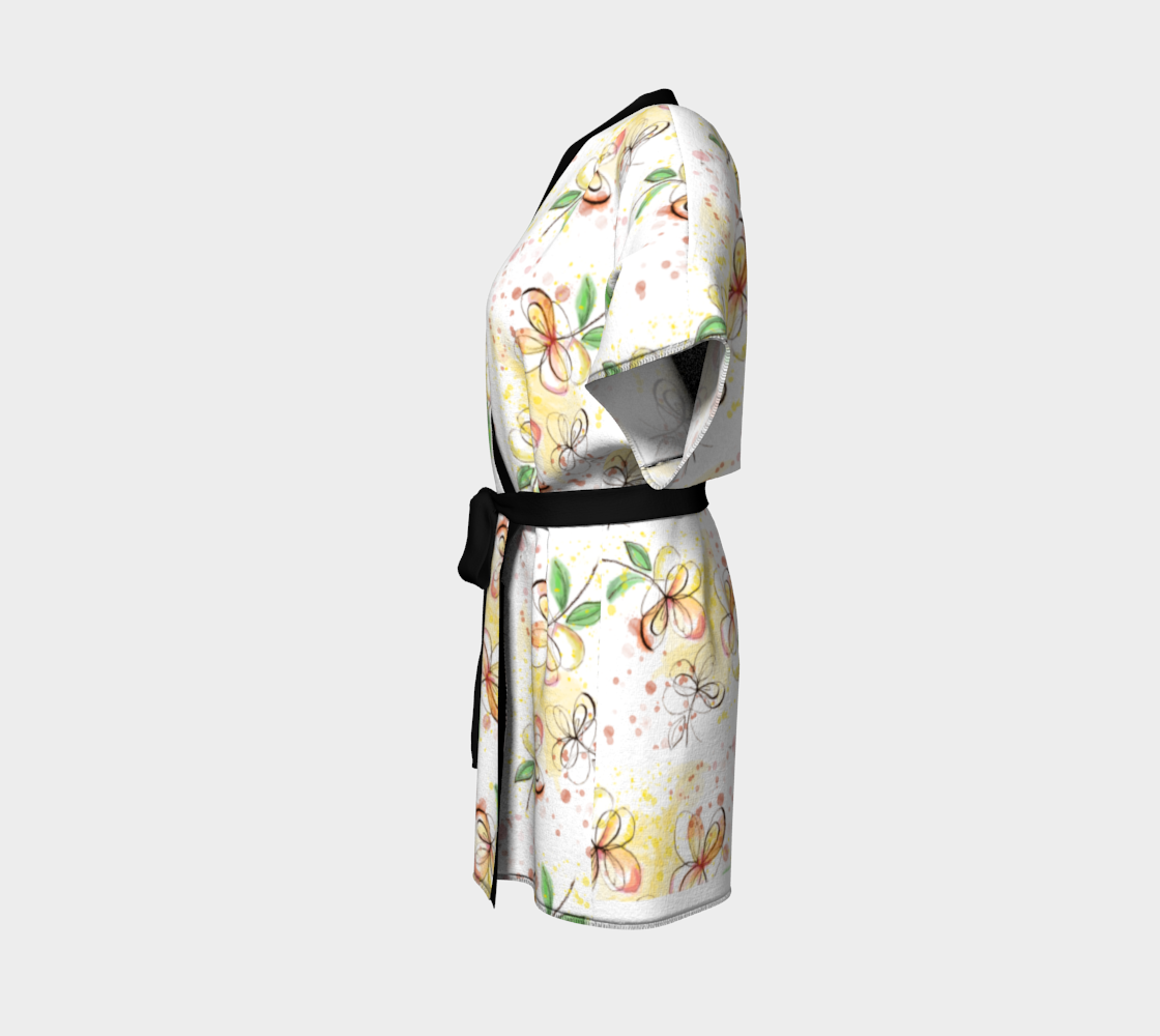 Wrap yourself in wearable art—infused with intention, beauty, and healing energy. A New Day features delicate hand-drawn florals and soft watercolor splashes, capturing the essence of renewal and gentle transformation. Each kimono is infused with Reiki energy to support balance, peace, and presence as you wear it.