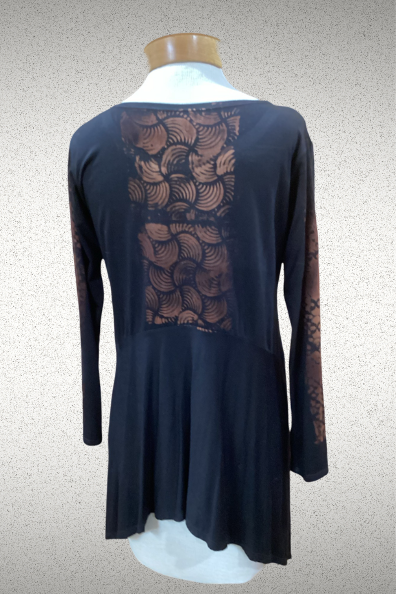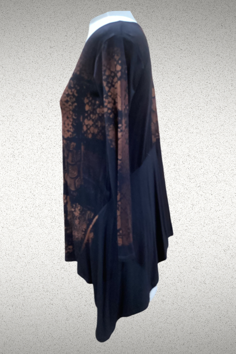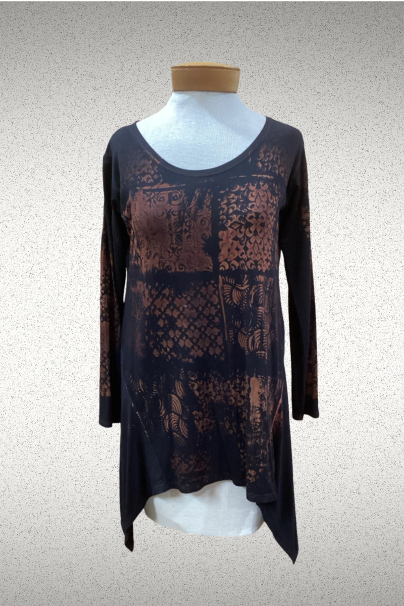 This aline, asymmetric top made of sustainable, fabric has that meaning - the kind that you know to the core of you, while being outwardly eye-catching and fashionable. In addition it it has a unique pattern that was discharged into it.