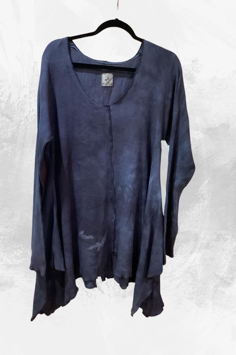 Cozy, stylish and fluid enough to hang nicely while still heavy enough to be flattering and non-clinging. The tunic was hand dyed, so though I ordered black, it came as a soft lavender-grey with some blue areas. Not what I expected, but earthy and subtle so I kept it just the same. Good to be aware if you order black. Overall, it was nice quality and came quickly. Recommended.