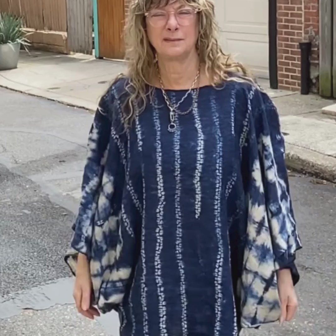 Special touches include a beautiful combination of specialty shibori patterns, adding a touch of artisan flair to this everyday essential.Easy to care for, this tunic is machine washable on a delicate cold cycle. Simply hang it to dry and you're ready to wear it again.