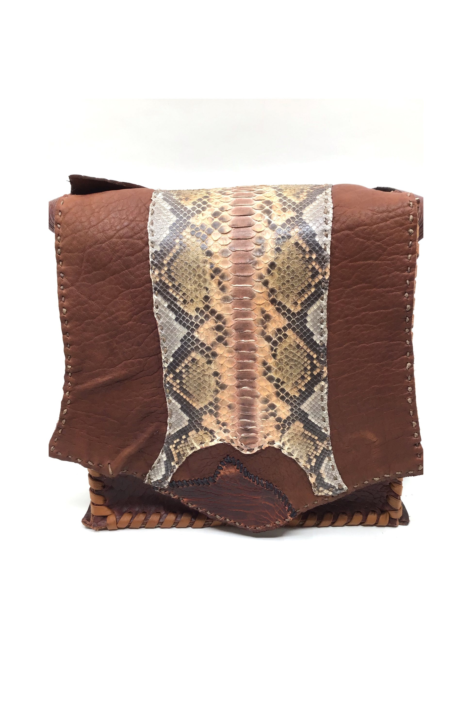 This bag is THE one. Handmade, one of a Kind leather handbag with hand painted python on the flap.